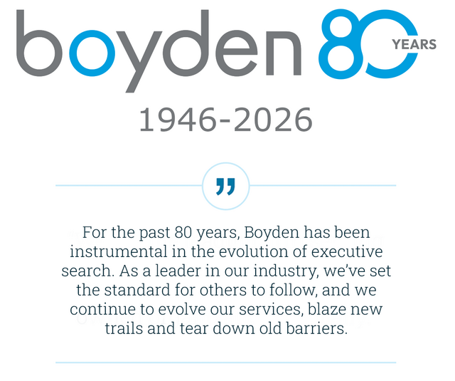 For 80 years, Boyden has guided organizations through moments of opportunity, change and reinvention. Our partners bring industry depth and advisory insight across executive search, interim management and leadership consulting, helping clients navigate evolving markets, complex stakeholder environments and shifting expectations of modern leadership.