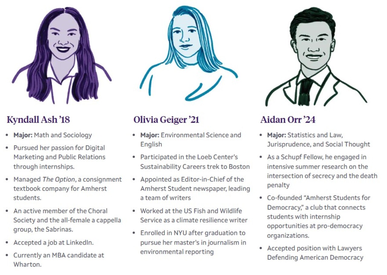 Amherst's commitment to student outcomes is rooted in an interdisciplinary education that prepares students for post-graduate employment and lifelong learning, purpose, and professional agility.