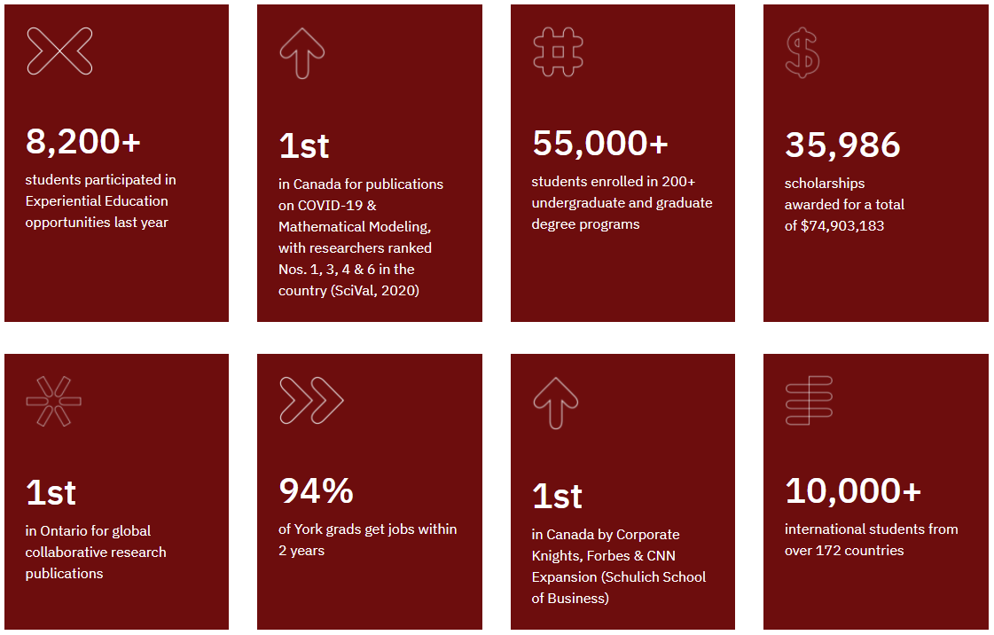 York University is a leading international teaching and research university and a driving force for positive change. Empowered by a welcoming and diverse community with a uniquely global perspective, we are preparing our students for their long-term career and personal success. Together we are making things right for our communities, our planet, and our future.