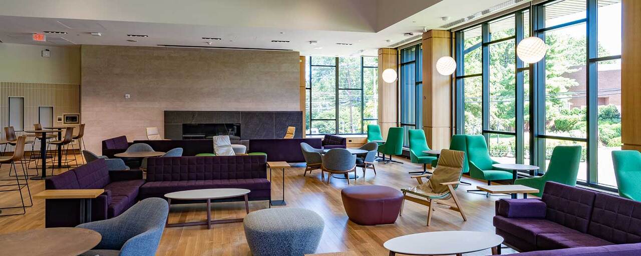 In addition to their round-table classrooms, Sarah Lawrence has outstanding theatres, art and performance studios, and music spaces; modern science labs; state-of-the-art graphic computing equipment; competitive sports facilities; a 60,000-square-foot visual arts center; and recently renovated dining facilities.