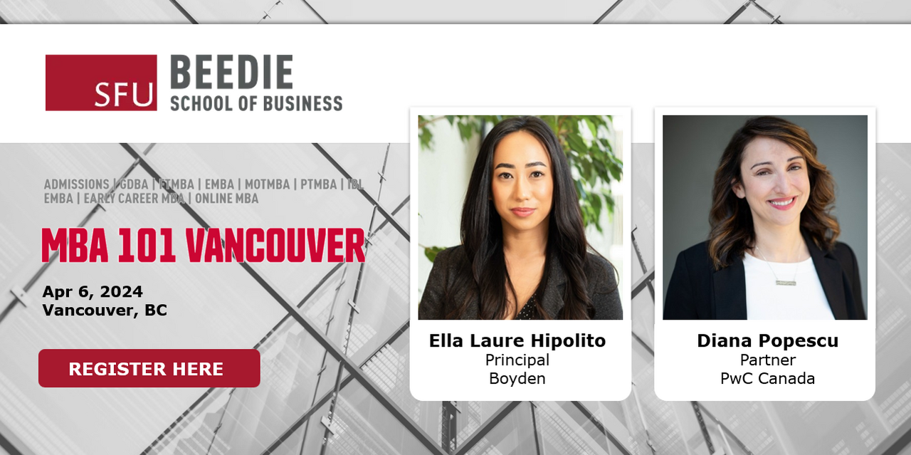 SFU Beedie's Graduate Recruitment & Admissions team is hosting their annual one-day conference at their Vancouver Campus, MBA 101. Attendees (prospective graduate students) will have the opportunity to participate in a sample MBA Mini Class, attend a career-focused panel, meet alumni, and learn more about all their MBA and business graduate programs.