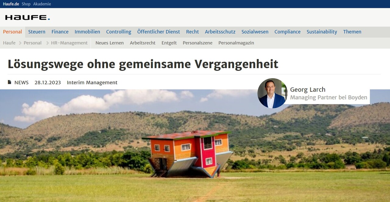 Dieser Artikel von Georg Larch erschien am 28.12.2023 erstmalig online unter der Rubrik Personal mit dem Titel „Lösungswege ohne gemeinsame Vergangenheit“ bei haufe.de.