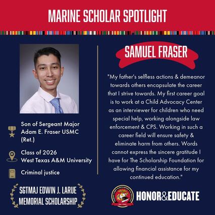 The Marine Corps Scholarship Foundation (MCSF) is the Nation’s oldest and largest provider of need-based scholarships to military children, helping cover the cost of attending post-high school, undergraduate, and career and technical education programs. The Marine Corps Scholarship Foundation was established to honor the service and sacrifice of Marines and their families.