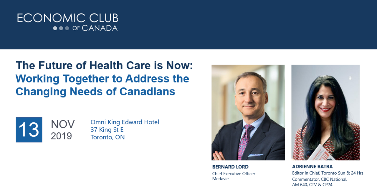 In conversation with Toronto Sun / 24 Hrs Editor-in-Chief Adrienne Batra, CEO Bernard Lord addresses the Economic Club of Canada on Medavie’s vision for reshaping health care management and delivery to add capacity, create efficiencies and improve the well-being of Canadians.