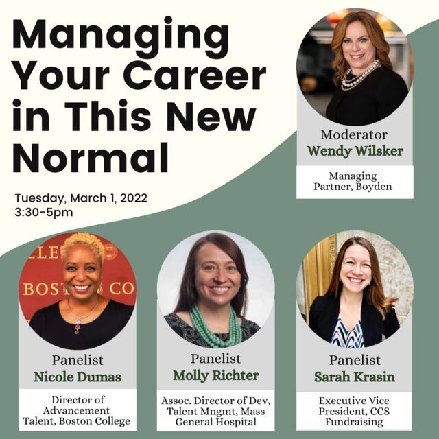 As we approach the year two milestone for working and navigating within a pandemic, join this conversation moderated by Boyden's Wendy Wilsker and hear from three executives on how to manage your career in this new normal. While there have certainly been limitations placed on employees during the pandemic, there have also been new opportunities that had not been available historically. Learn how they leveraged the current climate to advance their careers for themselves and others by finding and influencing the work culture that fits their personal needs and values; how to be a sponsor, mentor, and a mentee; advocating for you and your team’s professional development and advancement; and best practices and current trends when navigating new job opportunities including in other geographic areas.
