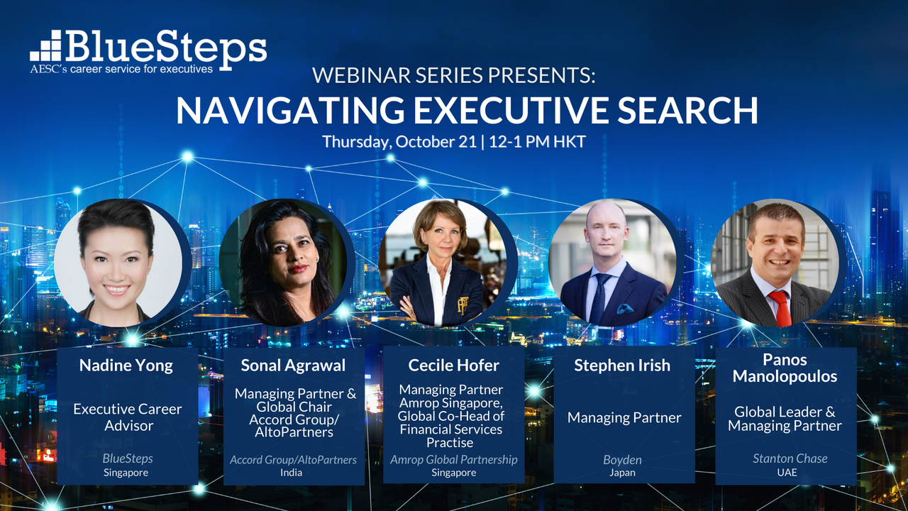 Understanding how the executive search process works, and how to leverage it, is vital to long-term career success. Attendees will discover best practices, top tips and how to avoid common pitfalls in the latest event by BlueSteps Asia Pacific Webinar Series.