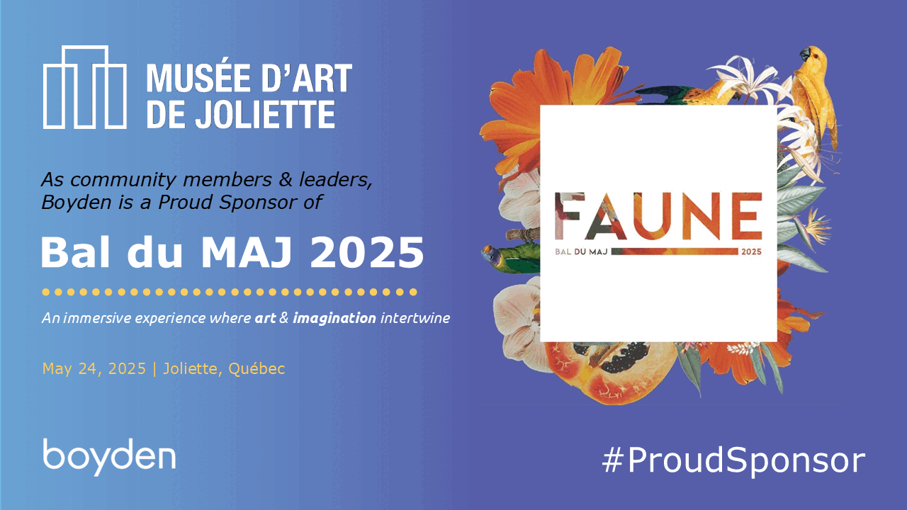 Boyden est honoré de commanditer le Bal du MAJ 2025 du Musée d’art de Joliette.