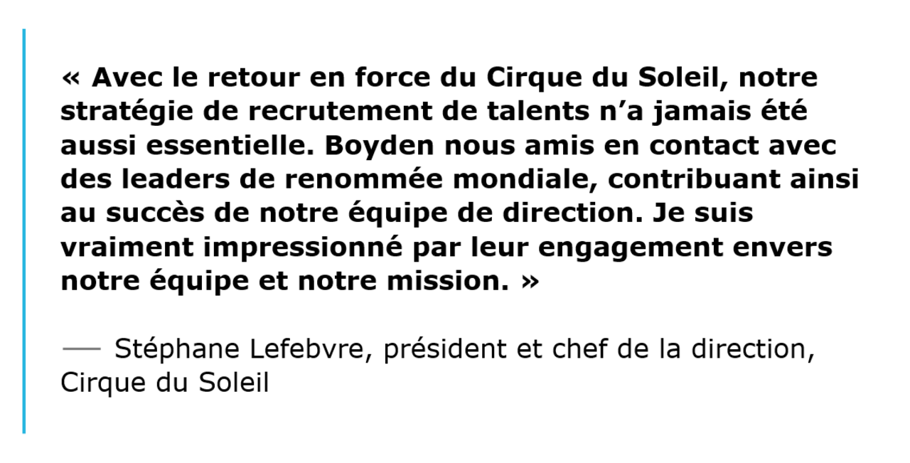 Prenant un pas de recul pour mesurer le chemin parcouru, le Québécois et son équipe peuvent se targuer d’avoir bousculé le statu quo au Québec. Flairant le potentiel de la grappe technologique montréalaise, le cabinet Boyden s’est notamment positionné comme un partenaire stratégique pour les entreprises issues de ce secteur. Défiant le modèle d’affaires traditionnel, il ne craint pas de troquer ses honoraires contre de l’actionnariat dans ces jeunes pousses technos. « Nous avons ce niveau de confi ance dans les hauts dirigeants et dirigeantes que nous plaçons », dit Roger T. Duguay. Même chose pour les fonds d’investissement : le cabinet a développé une offre sur mesure pour l’industrie.