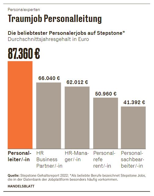 Dafür ist der Bruttodurchschnittsverdienst mit 54.424 Euro weder übermäßig hoch noch besonders niedrig. Allerdings liegt für gefragte Rollen wie die eines HR-Business-Partners das Einkommen deutlich höher, wie Zahlen von Stepstone zeigen.
