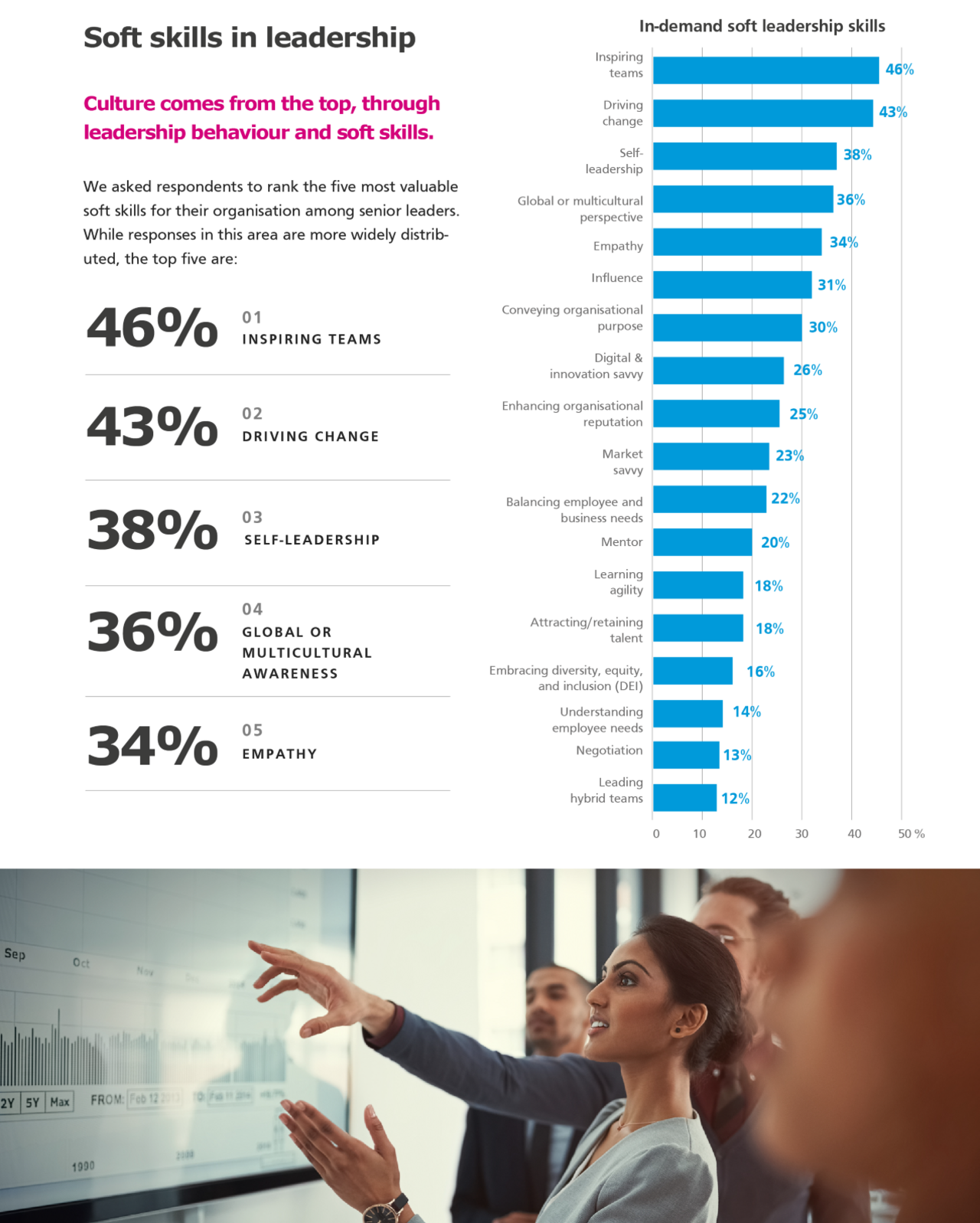 Having the stamina and energy to focus also on leadership talent comes across as a challenge, with limited recognition of attracting/retaining talent as a valuable soft skill among senior leaders.