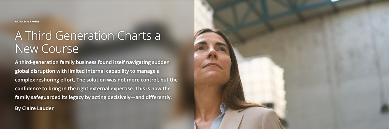 "A third-generation family business found itself navigating sudden global disruption with limited internal capability. The solution was the confidence to bring in the right external, interim expertise." says Claire Lauder, Managing Partner, Interim Management, United Kingdom.