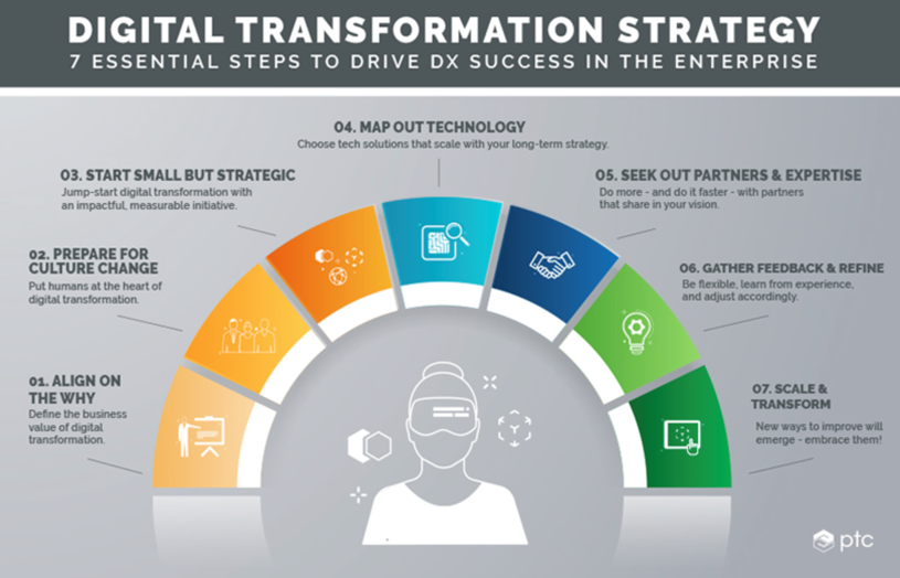 Software development company PTC offers a framework for success in managing change through digital transformation strategy:
