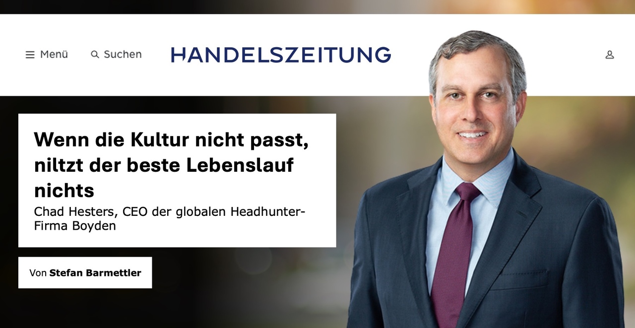 Chad Hesters, CEO der globalen Headhunter-Firma Boyden, spricht über seine Erfahrungen im Executive Search und betont die Bedeutung der kulturellen Passung bei der Besetzung von Führungspositionen. Boyden ist in 45 Ländern tätig und betreibt weltweit 75 Büros, um Spitzenpositionen wie CEO und Verwaltungsratsmitglied zu besetzen. Hesters unterstreicht, dass ein Kandidat zwar einen beeindruckenden Lebenslauf haben mag, aber wenn er nicht zur Unternehmenskultur passt, wird die Ernennung nicht erfolgreich sein.